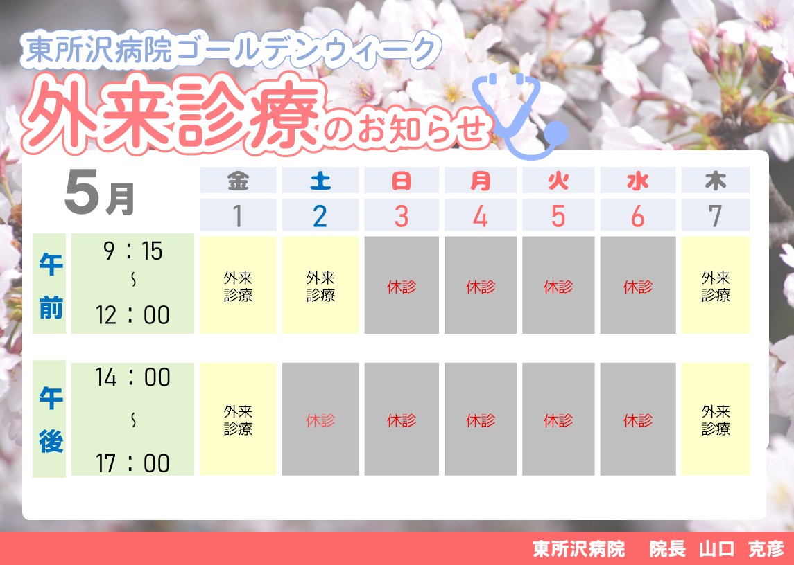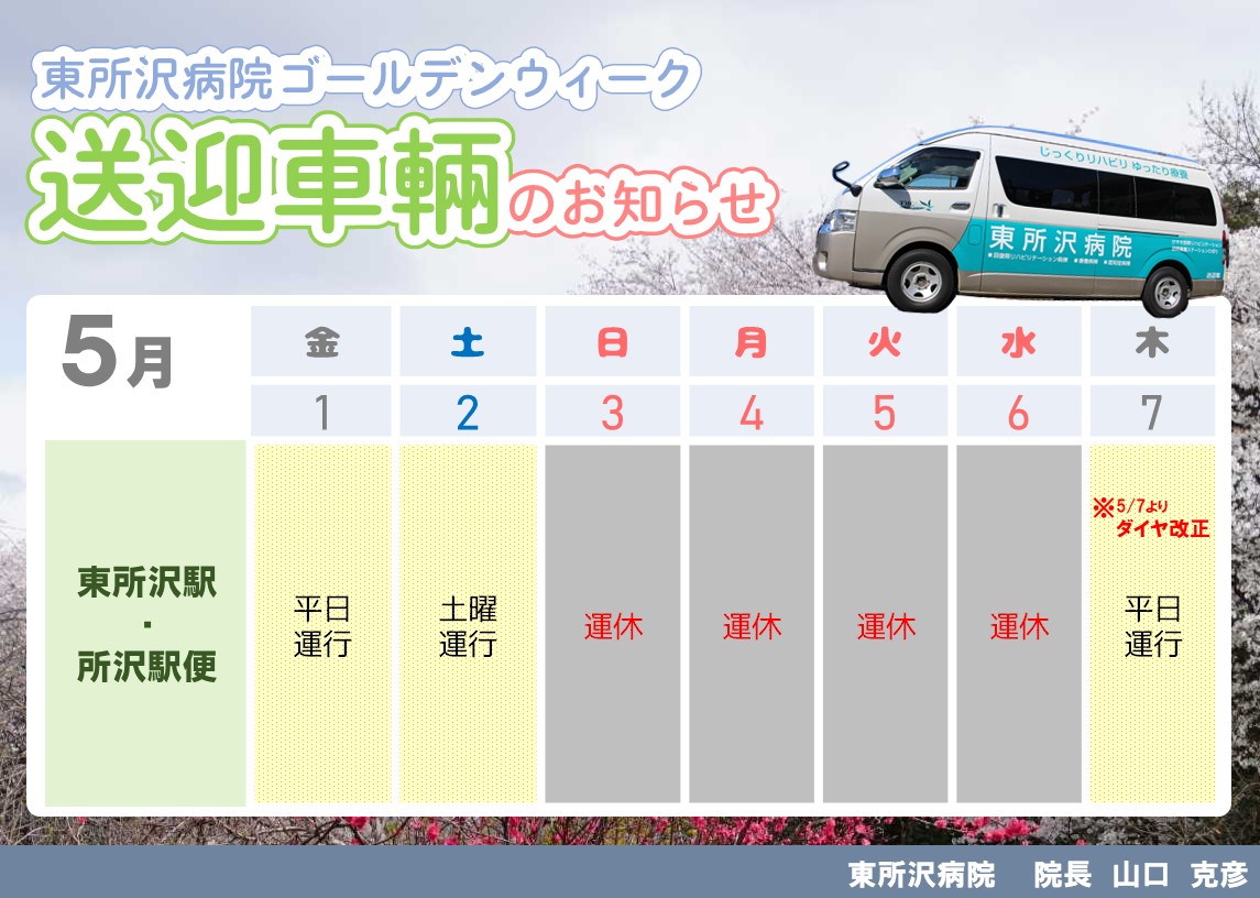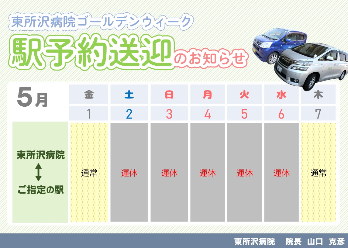 2026年ゴールデンウイークの外来診療、送迎車両、駅予約送迎について、