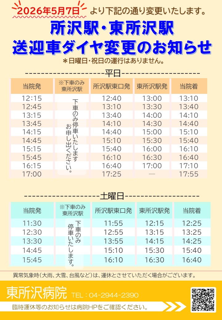 所沢・東所沢駅 巡回送迎バスの時刻表変更のお知らせ🚌