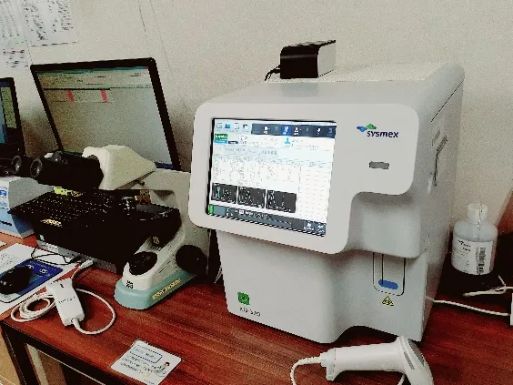 赤血球・白血球・血小板などの細胞成分や、ヘモグロビン、ヘマトクリットなどを測定しています。また、顕微鏡で血液像を観察し、白血病などの血液疾患を診断するのに必要な検査です。